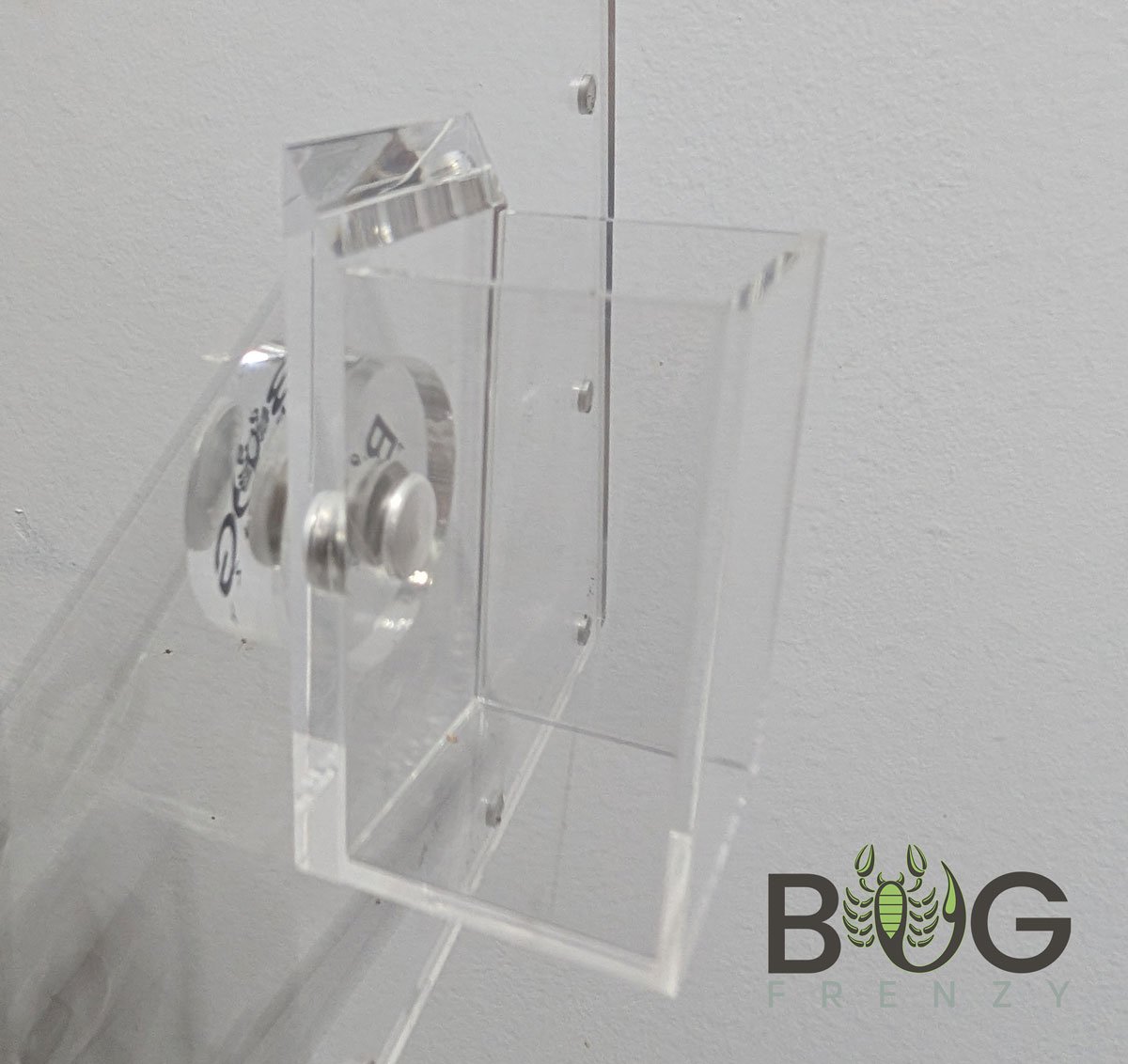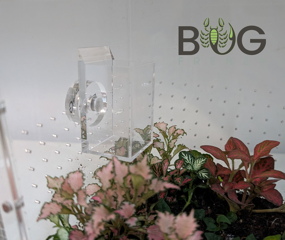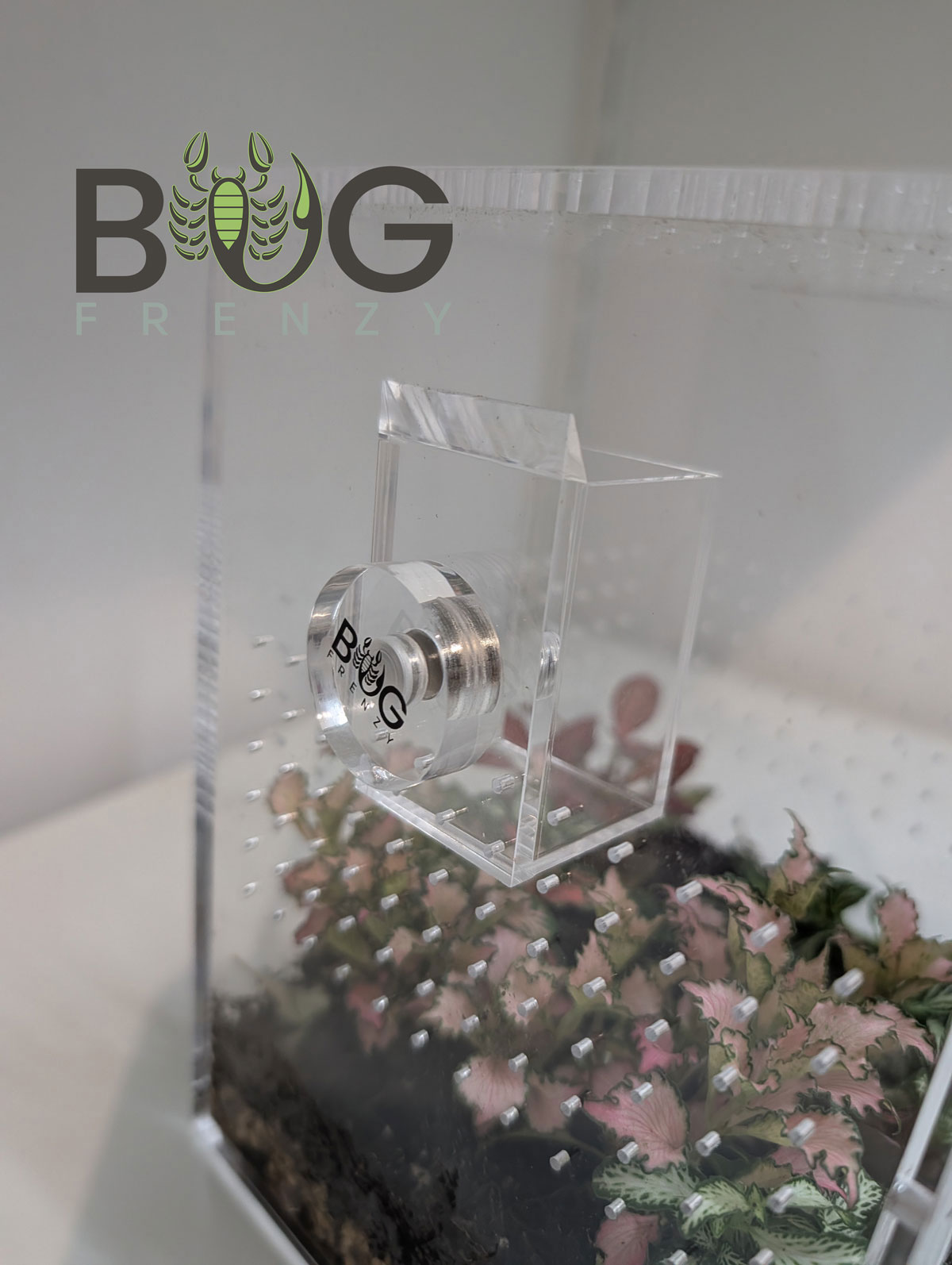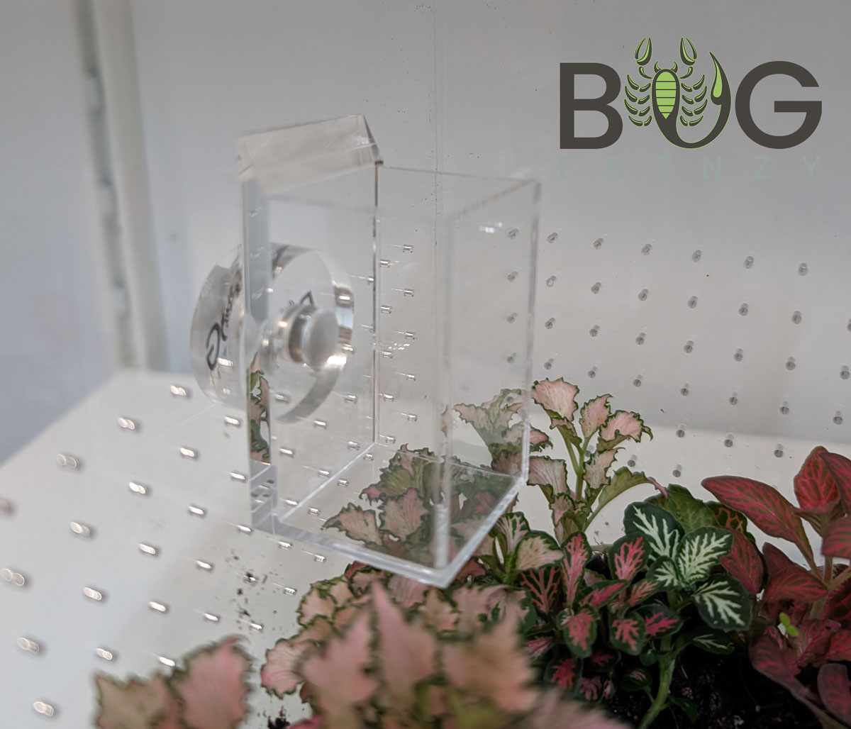 You can use this feeding cup to catch the cricket with the flush lip, up against any flat surface and then place the cup up high in the enclosure making sure your spider can see that dinner has been served. Not only does this work well for those super lazy (or superior) jumping spiders that doesn’t want to go down looking for food, but it can also help keep track of how often your jumper is eating. Crickets can’t escape the cup, unless they were born with super powers.