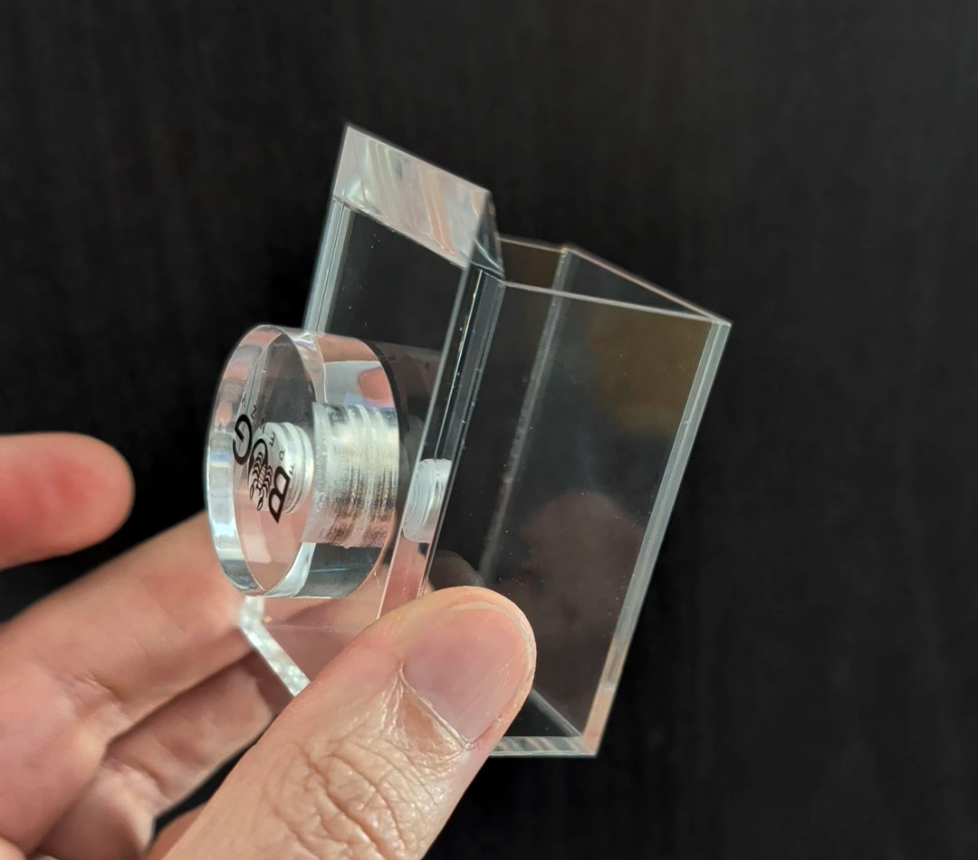 Measuring at 5.5cm height and 3.5cm width, it has a built in magnet, making sure the cup sits flush against the enclosure wall. On the outside you have the very strong magnetic round keeping it securely in place.