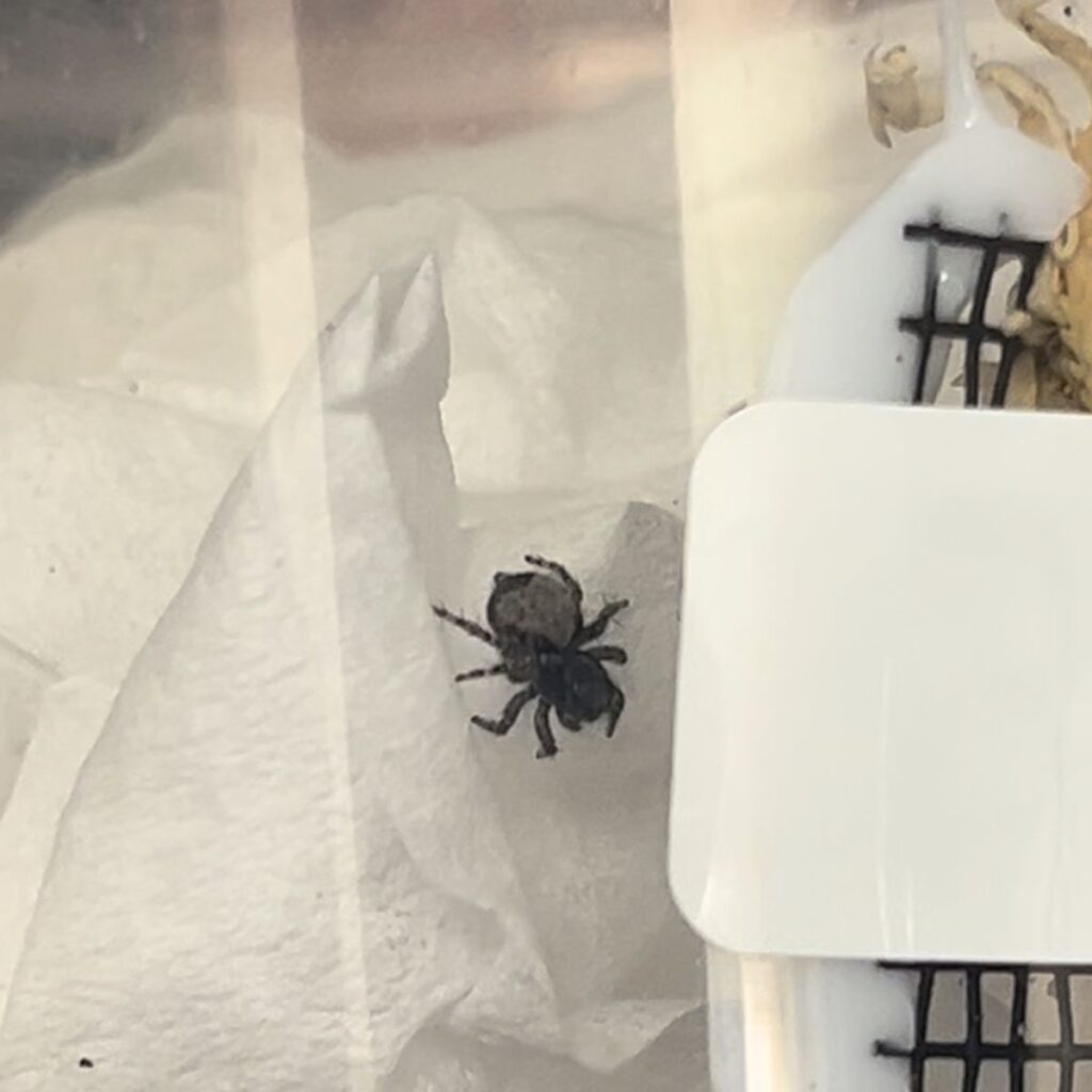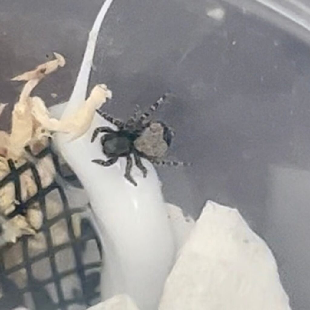 The pebble mimicking jumping spider is a medium sized species of jumping spider found on beaches around Adelaide, where they mimic sand grains and pebbles. They have been observed eating tiny black ants – about the size of a pinhead. They do well when fed pinheads.