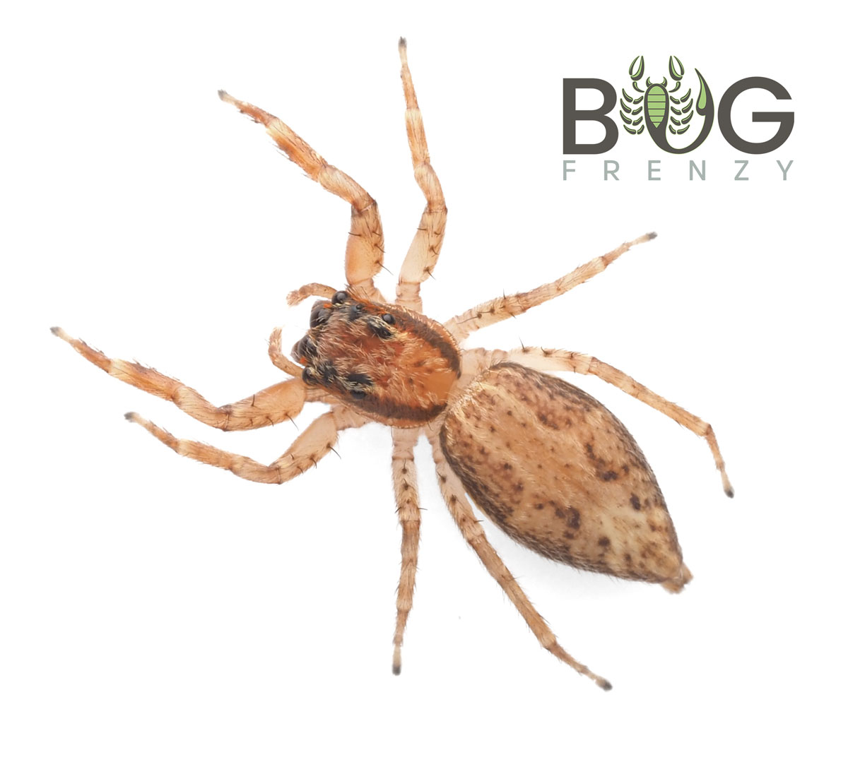 This is a medium sized jumping spider which can be found under the bark of eucalyptus trees in WA. It has a beautiful rusty sheen and is very friendly. Currently eating x-small crickets and is about 1cm in length.