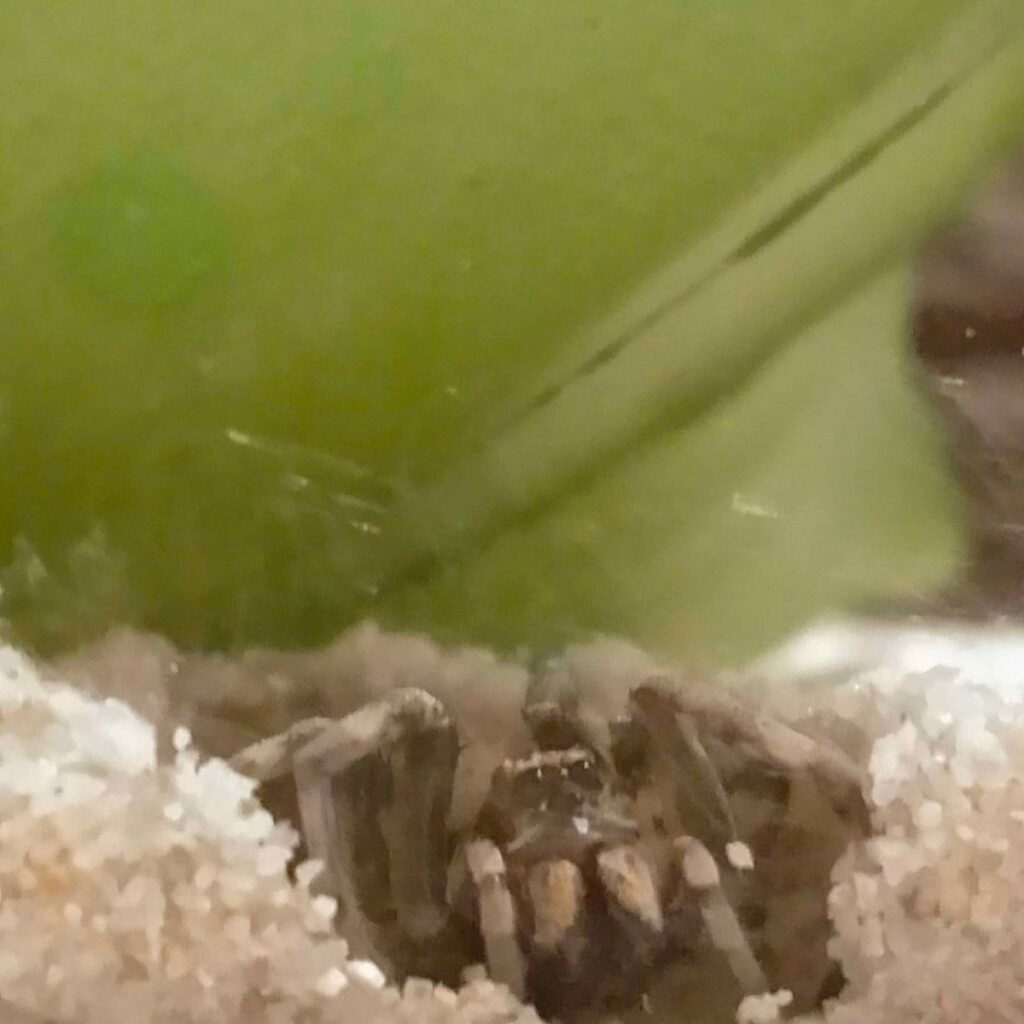 This is a mid sized wolf spider found in sandy habitats in southern WA including heathland and beaches. Currently eating small crickets.
